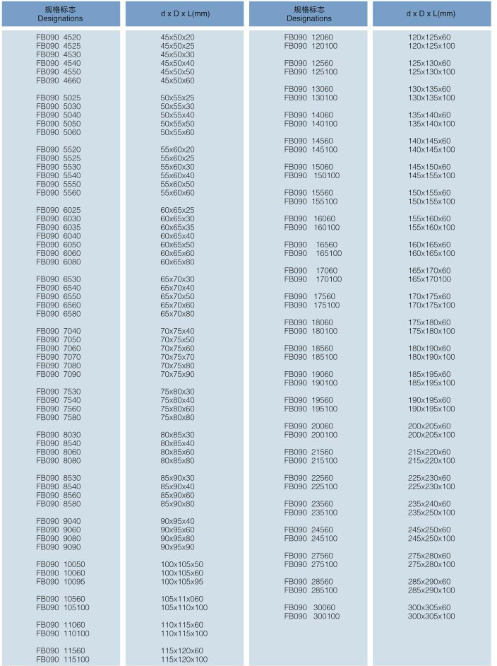 FB090標準襯套尺寸